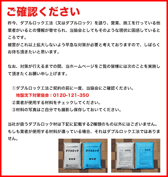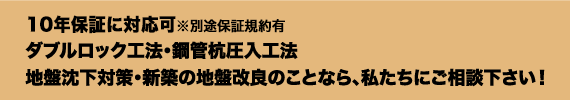 その中でも、最も優れた工法としておすすめしているのが『ダブルロック工法』です。その他にも、どのような工法があるのか、そしてその特徴など、ご相談いただければ、状態や地盤、ご予算に合った提案をさせていただきます。お気軽にご相談下さい。